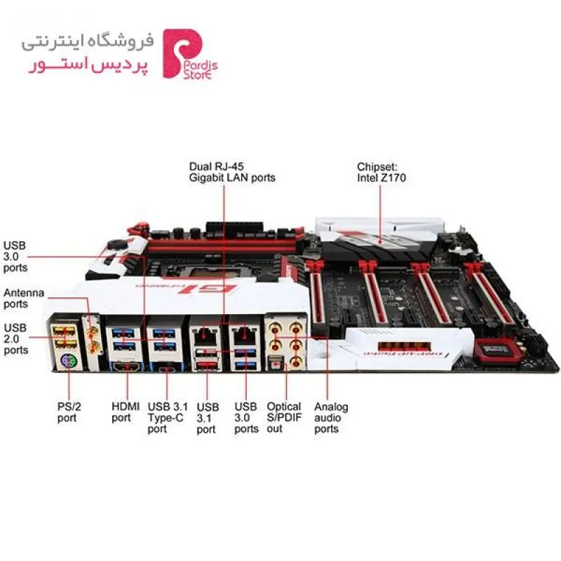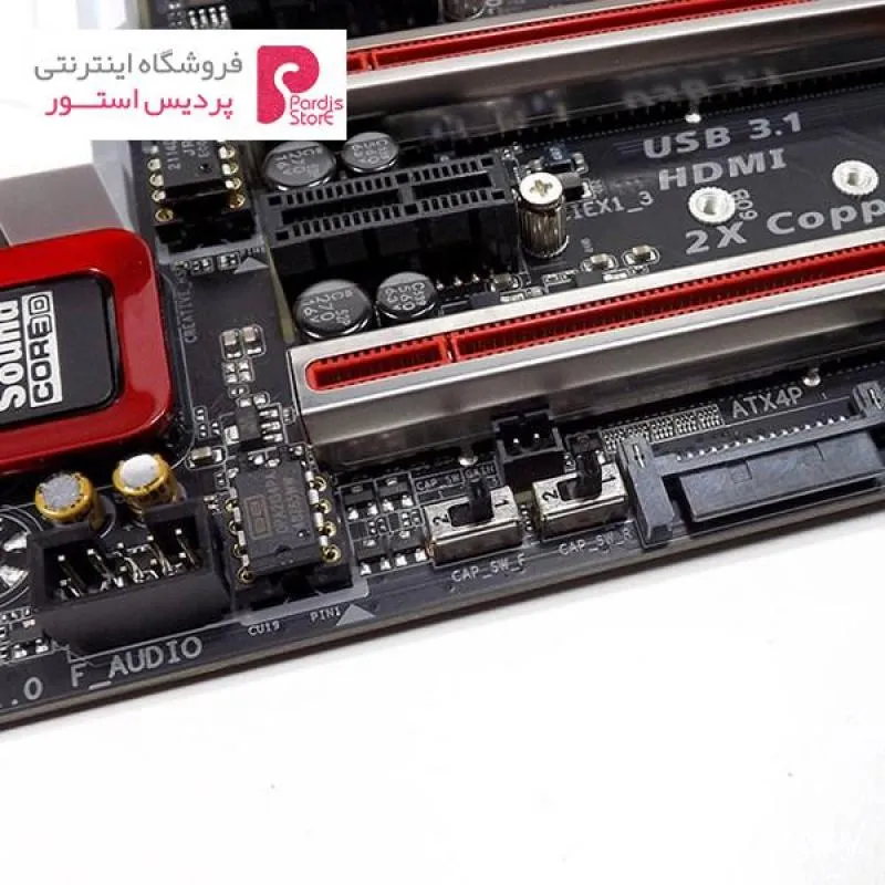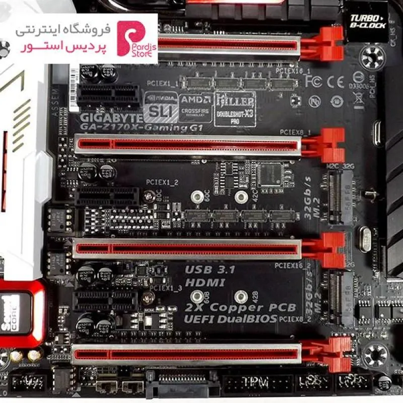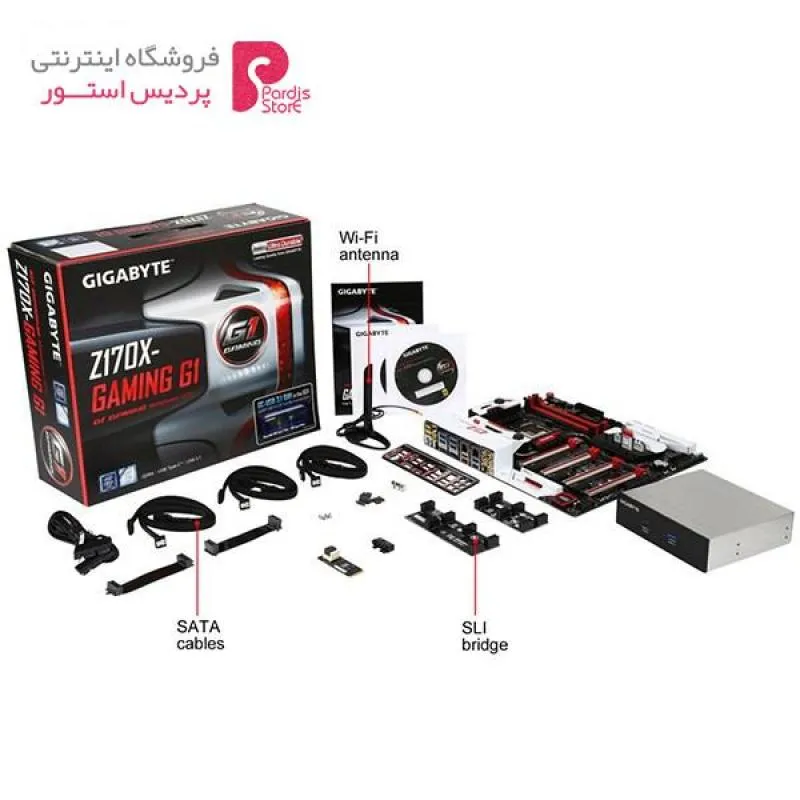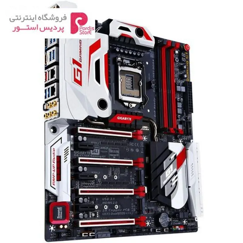 مادربرد GA-Z170X-Gaming G1 گیگابایت (Gigabyte) به چیپست Z170 اینتل مجهز شدهاست و میتوان از پردازندههای Core i7 / Core i5 / Core i3 / Pentium / Celeron نسل ششم اینتل که قابل نصب روی سوکت Intel LGA 1151 هستند در آن استفاده کرد. چهار عدد اسلات DIMM برای نصب حافظه RAM در این مادربرد وجود دارد که میتوان تا 64 گیگابایت حافظه DDR4 را در آن نصب و آنها را به صورت دوکاناله پیکربندی کرد. این مادربرد دارای چهار عدد اسلات PCI Express x16 برای نصب کارت گرافیکی مجزا است که به کمک آن میتوان انواع کارتهای گرافیکی حرفهای را روی مادربرد نصب کرد و از چینشهای مختلف SLI و Crossfire را به خدمت گرفت. مادربرد GA-Z170X-Gaming G1 سه عدد اسلات PCI Express x1 برای افزودن کارتهای توسعه در اختیار شما قرار خواهد داد تا بتوانید از کارتهای جانبی مورد نظرتان در این مادربرد استفاده کنید. گیگابایت در این مادربرد از مواد باکیفیتی استفاده کردهاست روی سوکت پردازنده و اسلاتهای رم و کارت گرافیک را با یک لایه آبکاری طلا پوشانده است؛ استفاده از آبکاری طلا در قسمتهای اتصالی دهنده به کیفیت و ماندگاری بیشتر منجر میشود. در پنل پشتی این مادربرد، پورت خروجی تصویرHDMI را در اختیار خواهید داشت تا در صورت عدم تمایل به استفاده از کارتهای گرافیکی مجزا، بتوانید مانیتورتان را مستقیما به خروجیهای تصویر مادربرد وصل کنید. خروجی صدای مادربرد از نوع 7.1 کاناله است که با استفاده از کارت صدای باکیفیت Creative امکان شنیدن صدایی فراگیر را در اختیار مصرفکننده قرار میدهد. برای ارتباط دادن مادربرد به شبکه به صورت کابلی، دو عدد سوکت LAN گیگابیتی با برند Killer در اختیار خواهید داشت که از سرعت و کیفیت فوقالعاده بالایی برخوردار هستند. وجود دو عدد اسلات M.2 و برد تغذیه 22 فاز و سیستم خنککننده حرفهای از مزایای قابل اشاره این مادبرد هستند. با استفاده از چنین مادربردی میتوانید از جدیدترین قطعات در سیستم کامپیوتری خود استفاده کنید و یک کامپیوتر حرفهای داشتهباشید.