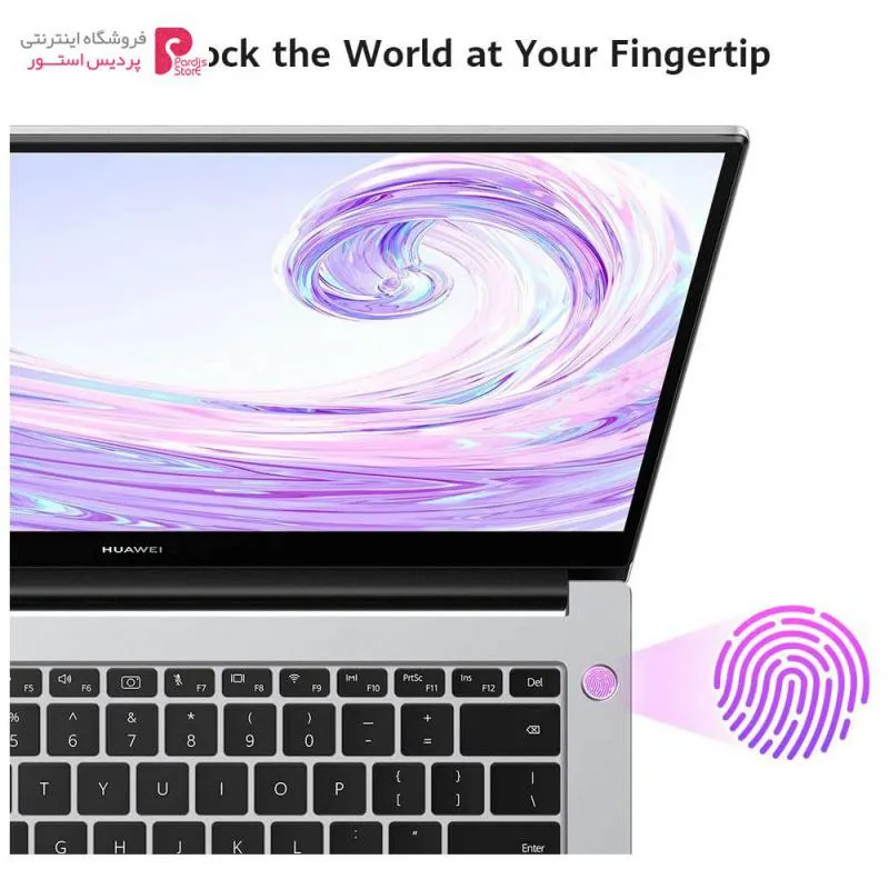 لپ تاپ هوآوی Matebook D14-A شرکت هوآوی در سال ۲۰۲۰ از سری لپتاپهای ۱۴ اینچی تحت عنوان MateBook رونمایی کرد. این لپتاپ با یک طراحی زیبا و وزنی سبک روانه بازار شده است. این لپ تاپ دارای ضخامت 15.9 میلی متر و وزن 1.3 کیلوگرم است که حمل و جابجایی آن را بسیار آسان میکند. Matebook D14 هوآوی از ساختار عمدتاً آلومینیومی و فلزی برخوردار است که در کنار استحکام بالا، موجب زیبایی و لذت بیشتر استفاده آن میشود. یکی از مهمترین ویژگیهای این مدل حسگر اسکنر اثر انگشت که داخل همان دکمه خاموش-روشن دستگاه قرار گرفته و با یک اشاره انگشت، قفل آن باز میشود که موجب افزایش امنیت و استفاده آسان گردیده است. لپ تاپ MateBook D14 به یک صفحه نمایش FullView با پنل نوع IPS مجهز است که دارای وضوح تصویر 1920×1080 پیکسل یا Full HD است. صفحه نمایش بکار رفته دارای ویژگیهای قابل توجه دیگری چون زاویه دید بسیار گسترده 178 درجه، بیشینه شدت روشنایی 250 نیت، کنتراست 800:1 و نسبت ابعاد 16:9 است. این لپ تاپ از پردازنده مرکزی نسل دهمی Core i7-10510U اینتل با 16 گیگابایت حافظه رم پرسرعت DDR4 بهره میبرد. همچنین این لپ تاپ به 512 گیگابایت حافظه داخلی پرسرعت از نوع PCIe NVMe SSD مجهز است.