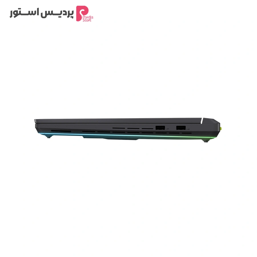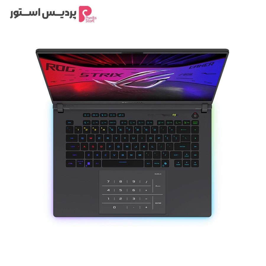 شاسی این لپ تاپ دارای طراحی مدرن ROG با عناصر قابل شخصیسازی است. نورپردازی RGB Aura Sync در اطراف بدنه و کیبورد، جلوهای جذاب و هماهنگ با سایر لوازم جانبی ROG ایجاد میکند.