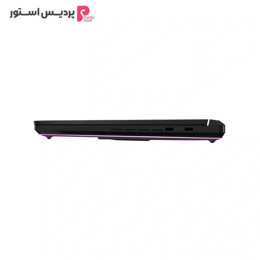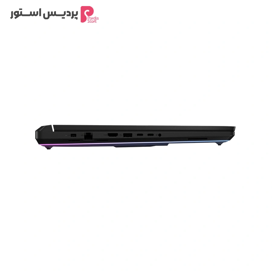 شاسی این لپ تاپ با طراحی تهاجمی، نورپردازی RGB در زیر و پشت دستگاه (Aura Sync) و استفاده از متریال با کیفیت بالا، هویت یک دستگاه گیمینگ پرچمدار را فریاد میزند. ابعاد بزرگتر آن، فضای بیشتری برای سیستم صوتی بهتر و پورتهای بیشتر فراهم میکند.