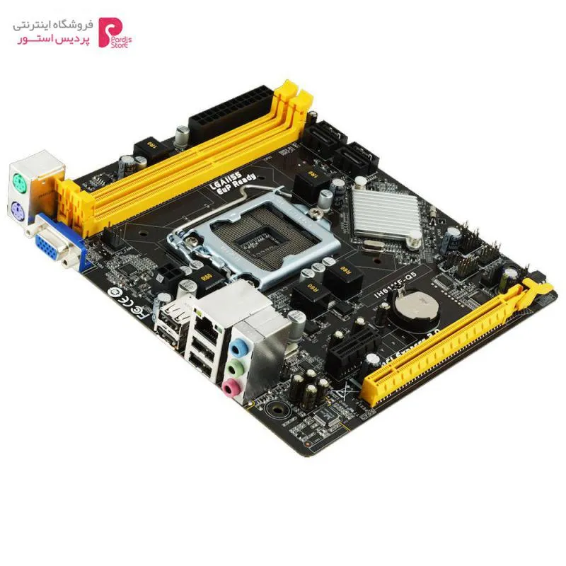 مادربرد بایواستار مدل IH61MF-Q5 نکات مهمی که هنگام خرید مادربرد باید بدان توجه داشت:برد اصلی و انتخاب آن یکی از مهمترین تصمیمات در زمان خرید و یا ارتقاء یک کامپیوتر است.این انتخاب علاوه بر تاثیر مستقیم در عملکرد کامپیوتر شما، در آینده و زمان ارتقاء اهمیت بیشتری پیدا می کند.برای انتخاب یک مادربرد مناسب در درجه نخست باید میزان بودجه ای که برای خرید برد اصلی درنظر گرفته ایم مشخص باشد.در حقیقت قیمت مادربرد اولین چیزی هست که باید بدان توجه داشته باشیم.سپس نوع و خانواده پردازنده ای که مورد استفاده قرار می گیرد معین گردد. که می تواند یکی از برند های AMD یا INTEL باشد.  مادربرد (Motherboard که مادربورد نیز تلفظ می‌شود)، بورد اصلی یا مین بورد (Mainboard) و همه اینگونه اصطلاحات به یک قطعه الکترونیکی اشاره دارند که در داخل کیس، لپتاپ‌ها، گوشی‌های موبایل، ساعت‌های هوشمند و همه این گونه گجت‌های دیجیتالی وجود دارد.اگر محفظه کیس کامپیوترتان را باز کنید، بزرگترین قطعه داخل کیس را مشاهده خواهید کرد که قطعات کامپیوتری از جمله پردازنده (CPU)، حافظه موقتی (RAM)، هارد دیسک‌ها (HDD)، کارت گرافیک (GPU) و سایر کامپوننت‌ها را به یکدیگر وصل کرده و انرژی الکتریکی و برق مورد نیاز این قطعات را از طریق منبع تغذیه (PSU) فراهم می‌کند.