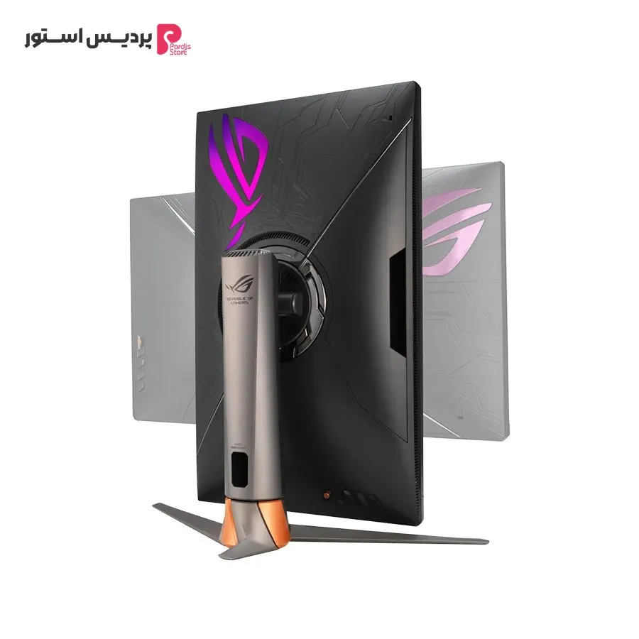 مانیتور گیمینگ ایسوس ROG Swift 360Hz PG27AQN با طراحی مینیمال و مدرن تولید شده است. حاشیههای باریک آن باعث میشوند تصویر وسیعتر دیده شود و تمرکز شما کاملاً روی بازی باقی بماند. این طراحی به ویژه برای گیمرهایی که از چند مانیتور کنار هم استفاده میکنند، تجربهای یکپارچه و جذاب ارائه میدهد.